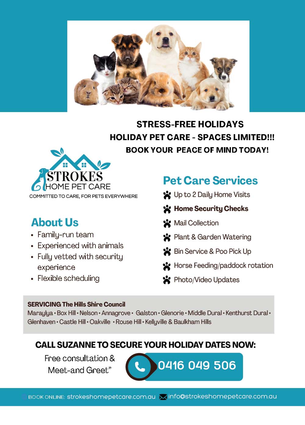 Yes, absolutely. For your peace of mind, every member of the Strokes Home Pet Care team is Police Checked, fully vetted, and carries Public Liability Insurance up to $10 million.